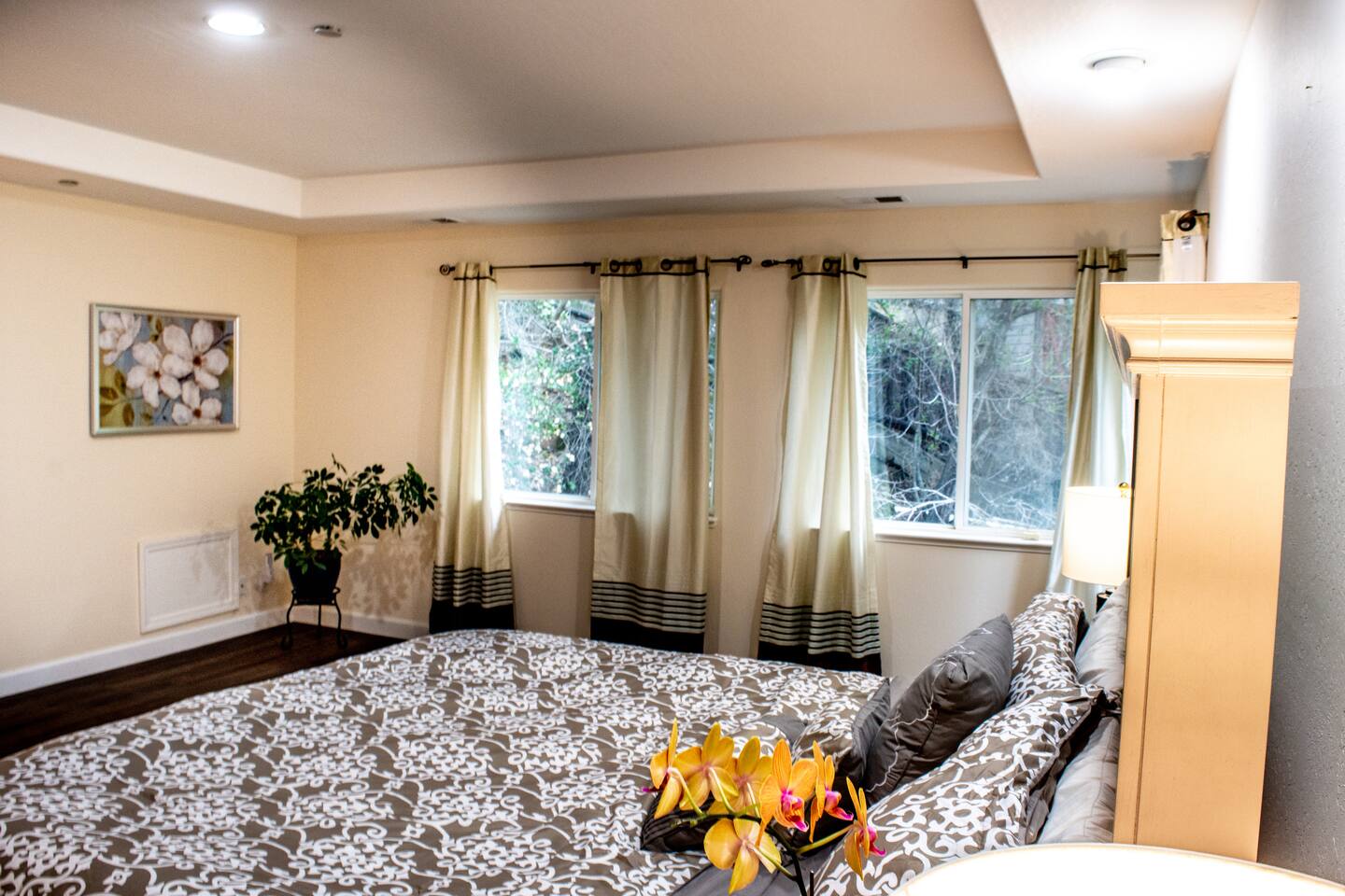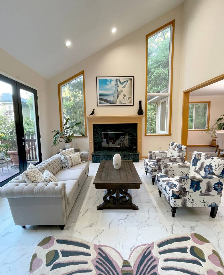 A spacious oasis close to everything! This home is in peaceful surroundings and nestled in lovely lush hills. We enjoyed cappuccinos on the deck in the morning sun with hummingbirds and butterflies. Evenings we were cozy by the fire or enjoying a movie in the fabulous entertainment room. The house gets plenty of natural light from the large windows and double French doors. It is well cared for, pristine, and well stocked for a thoroughly relaxing stay. The neighbors are great and there are many places to take beautiful walks in nature just out the front door, while being a short drive to great restaurants and activities. We extended our stay twice due to the excellent location, lovely house, and fantastic host. Mike is very responsive and considerate. We were well taken care of and will recommend this rental to our visiting friends and family.